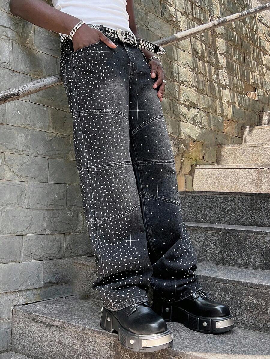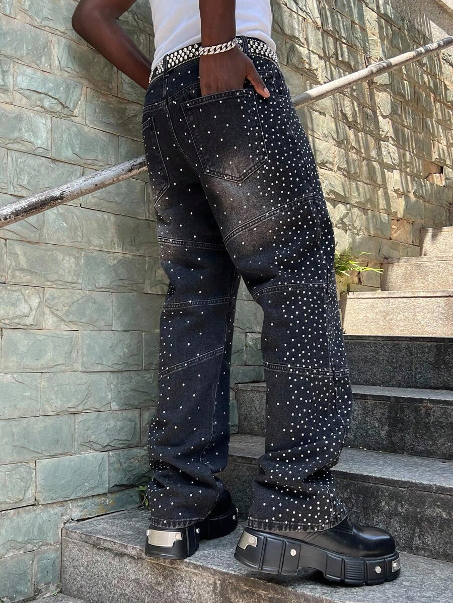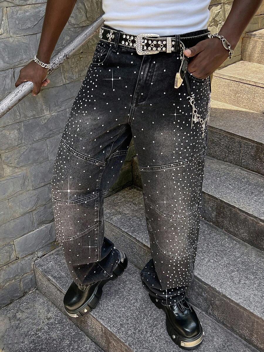 Street Life بنطلون جينز فضفاض لامع للرجال
