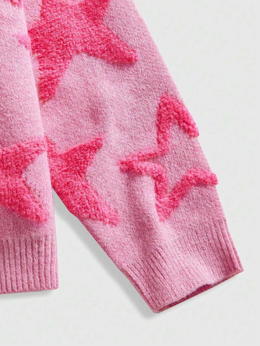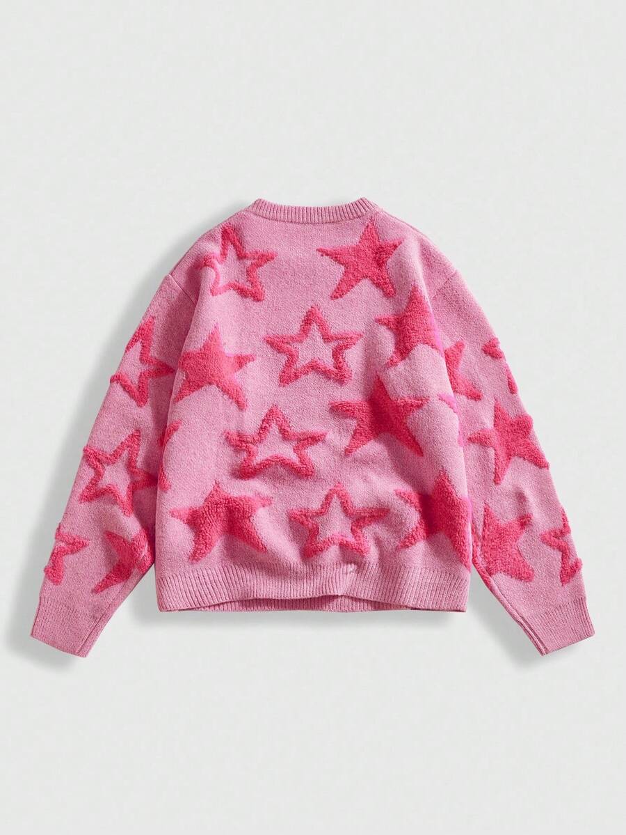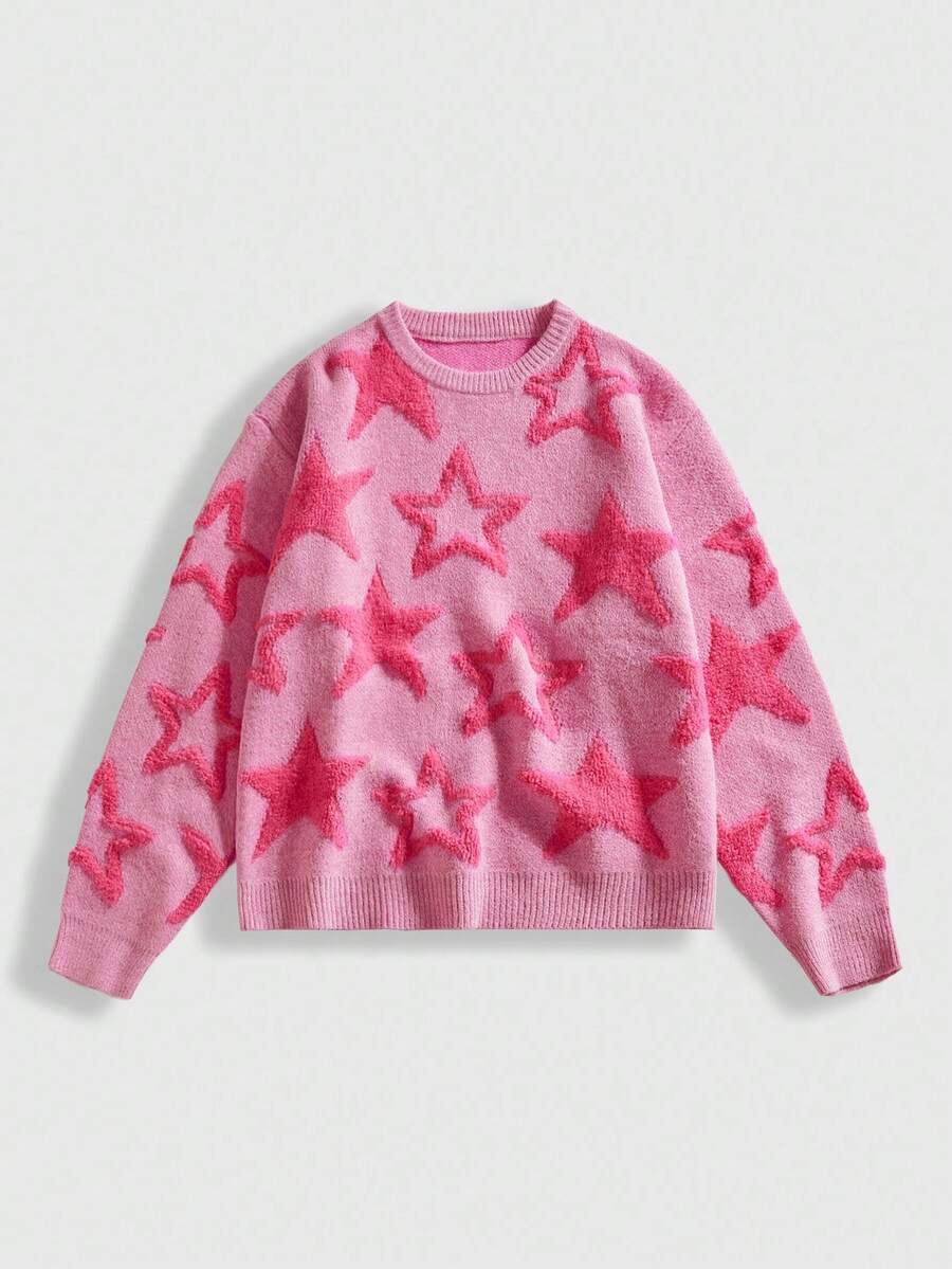 Street Life كنزة صوفية كاجوال للرجال من الصوف المنسوج بنقشة النجوم، بياقة مستديرة وأكمام طويلة، مناسبة للخريف والشتاء