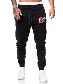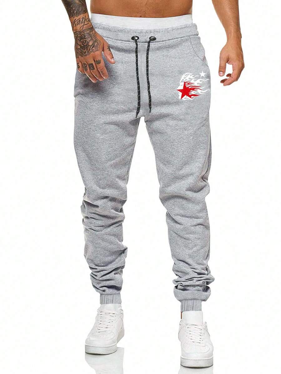 Street Life بنطلون رياضي رجالي بخصر مربوط بسحاب وجيوب بطبعة نجوم
