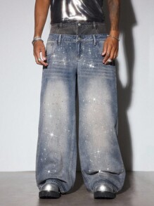 Street Life بنطلون جينز بجيوب وحزامين مزين بالراين ستون للموضة الشارعية للرجال