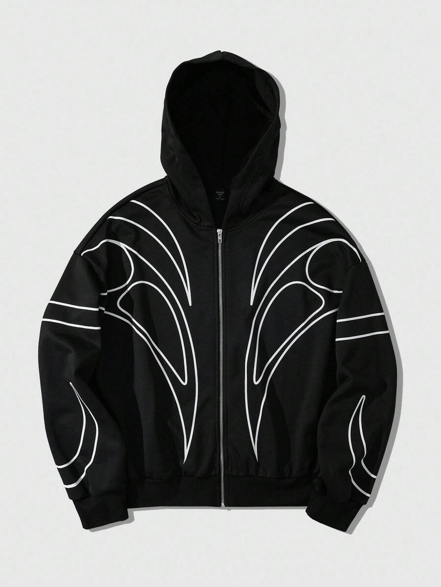 Street Life بلوزة رياضية فضفاضة مطبوعة برسومات شوارع للرجال، للخريف