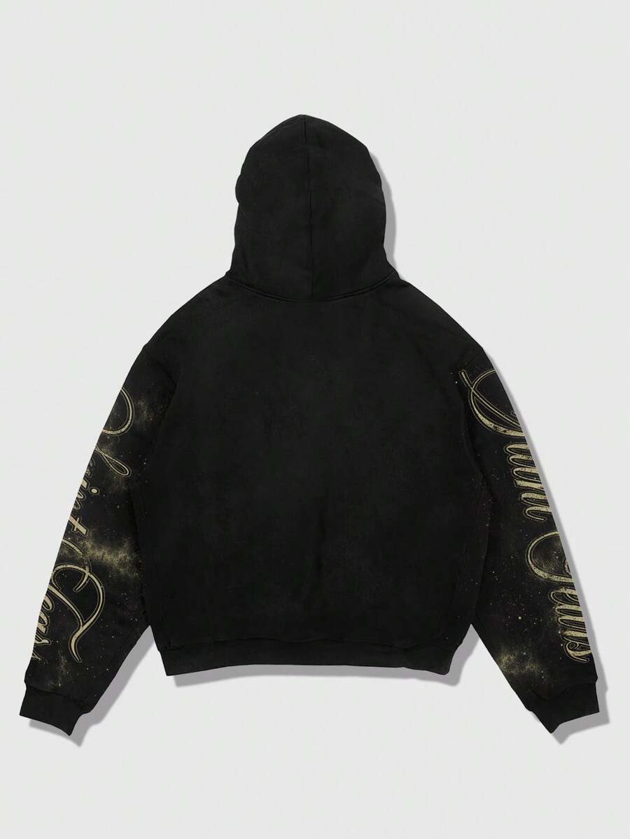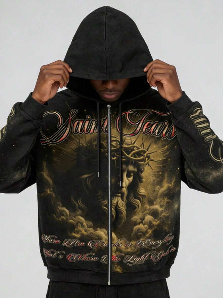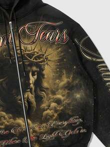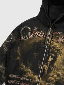 Street Life بلوزة هوديي رجالية بسحاب أمامي وسحاب للرباط مع طباعة شعار الشارع