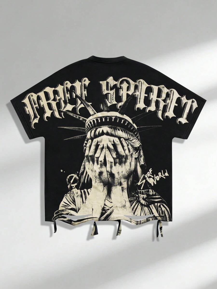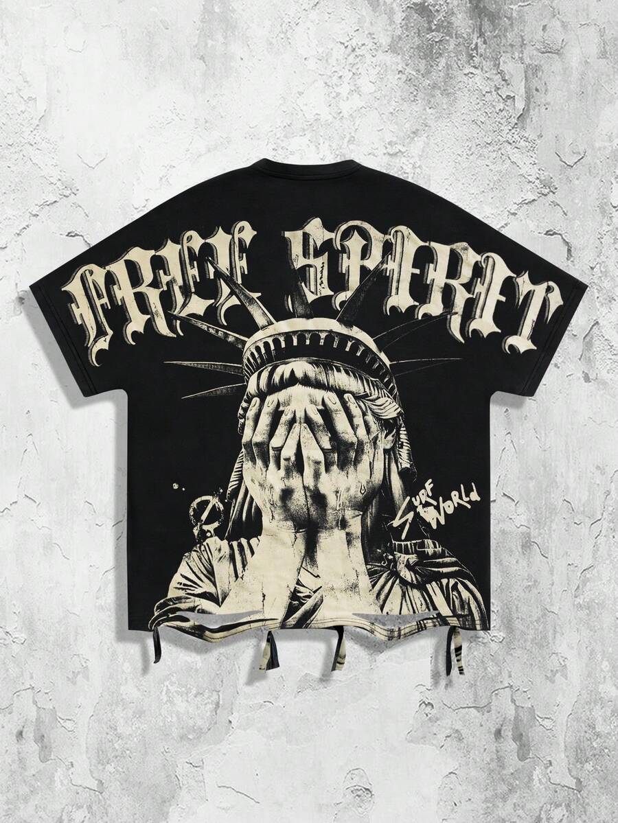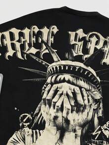 Street Life قميص تي شيرت رجالي بأكمام خفاش وطباعة جرافيك، مناسب للارتداء اليومي، ربيع/صيف