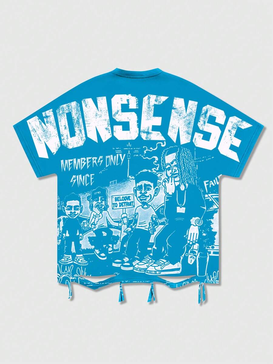 Street Life تي شيرت رجالي بأكمام خفاش مطبوع، مناسب للربيع والصيف