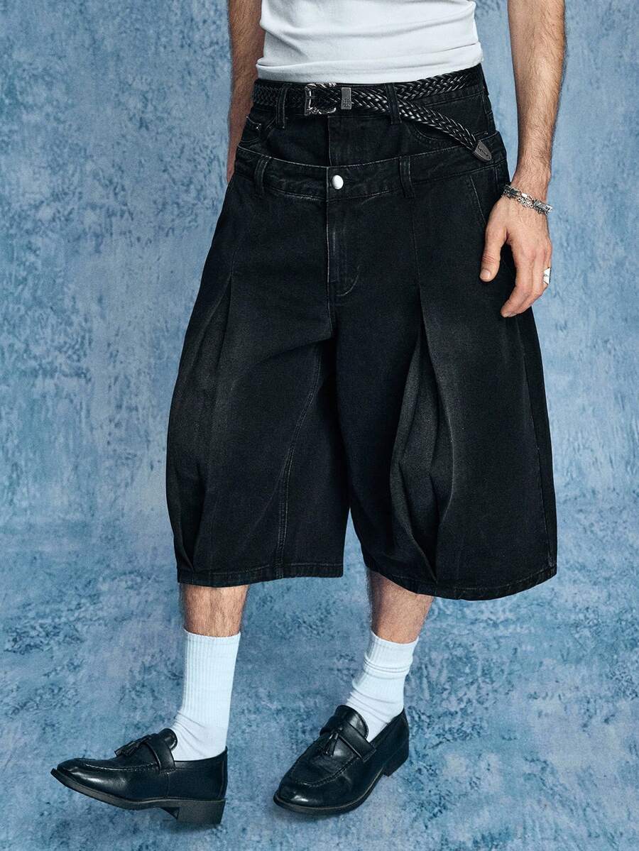 Street Life شورت جينز كاجوال صيفي للرجال بخصر مزدوج ومطوي 2 في 1