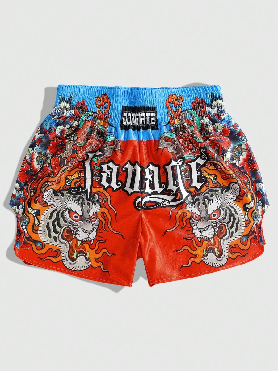 Street Life شورت بوكسينج فضفاض بخصر مطاطي مع طباعة حرف النمر، موضة الشارع الصيفية للرجال