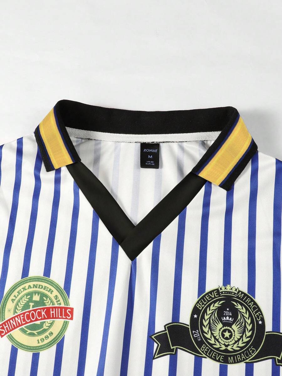 Street Life قميص بولو رجالي فضفاض عارض بأكمام قصيرة وشريط مخطط للصيف