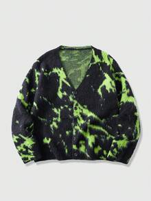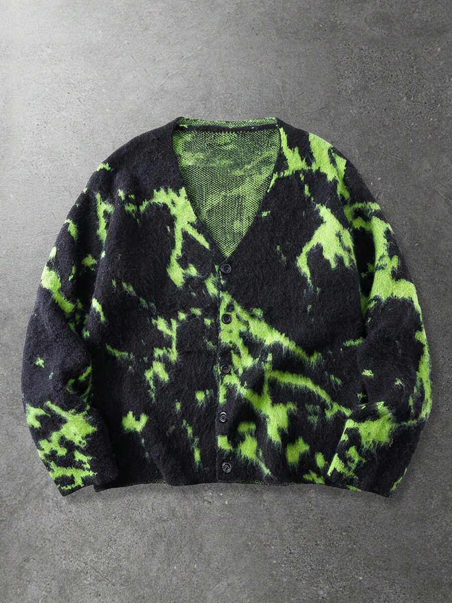 Street Life كارديجان كاجوال محبوك بأكمام طويلة وأزرار فردية، طباعة التعتيق، خريف/شتاء