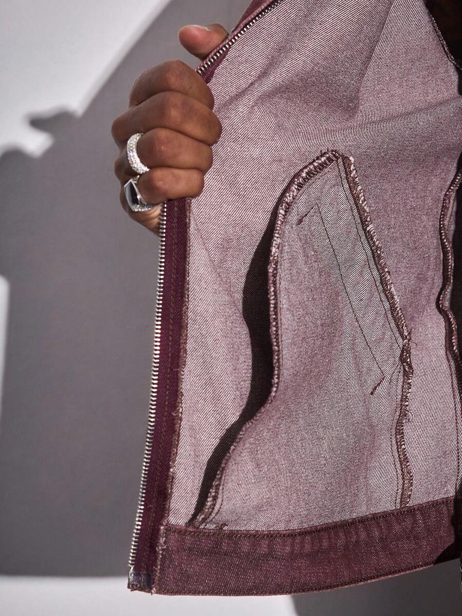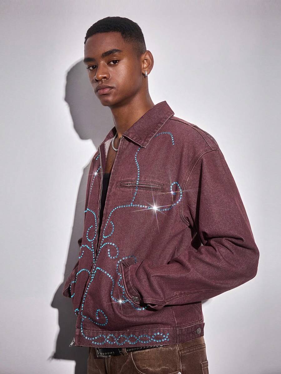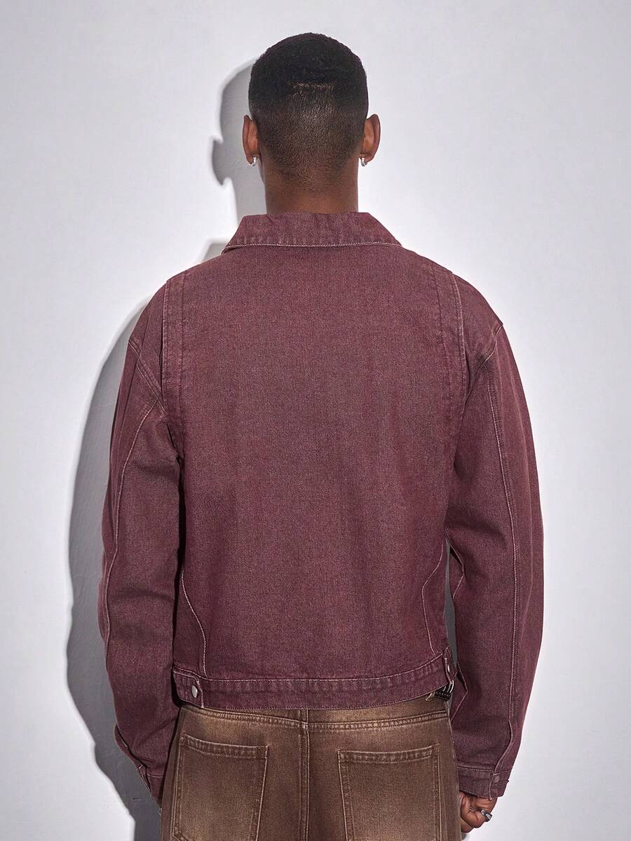 Street Life جاكيت جينز كاجوال للرجال بياقة فيروزية وأكمام طويلة وجيوب وسحاب أمامي
