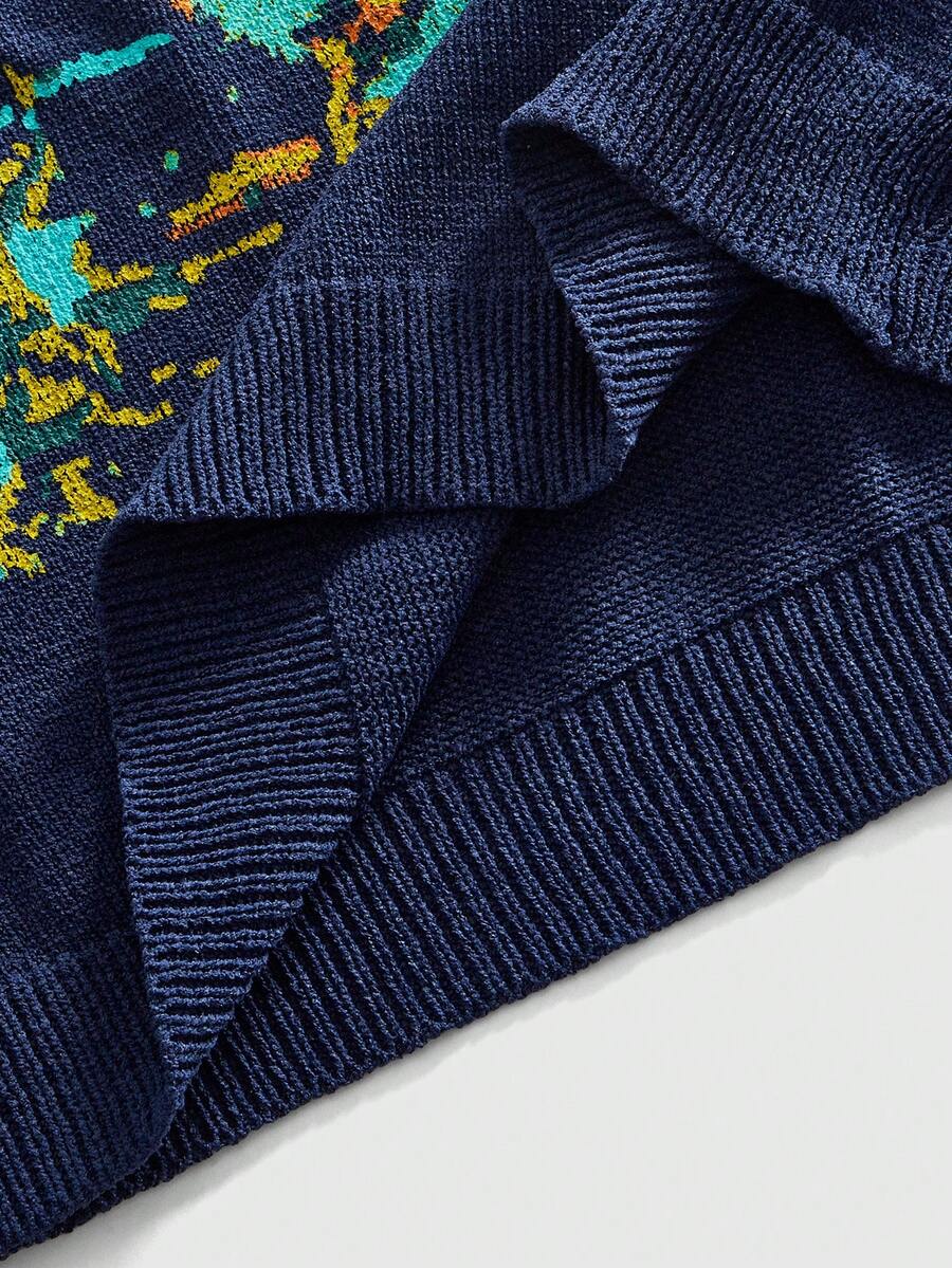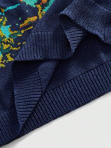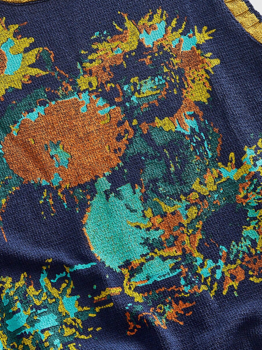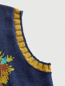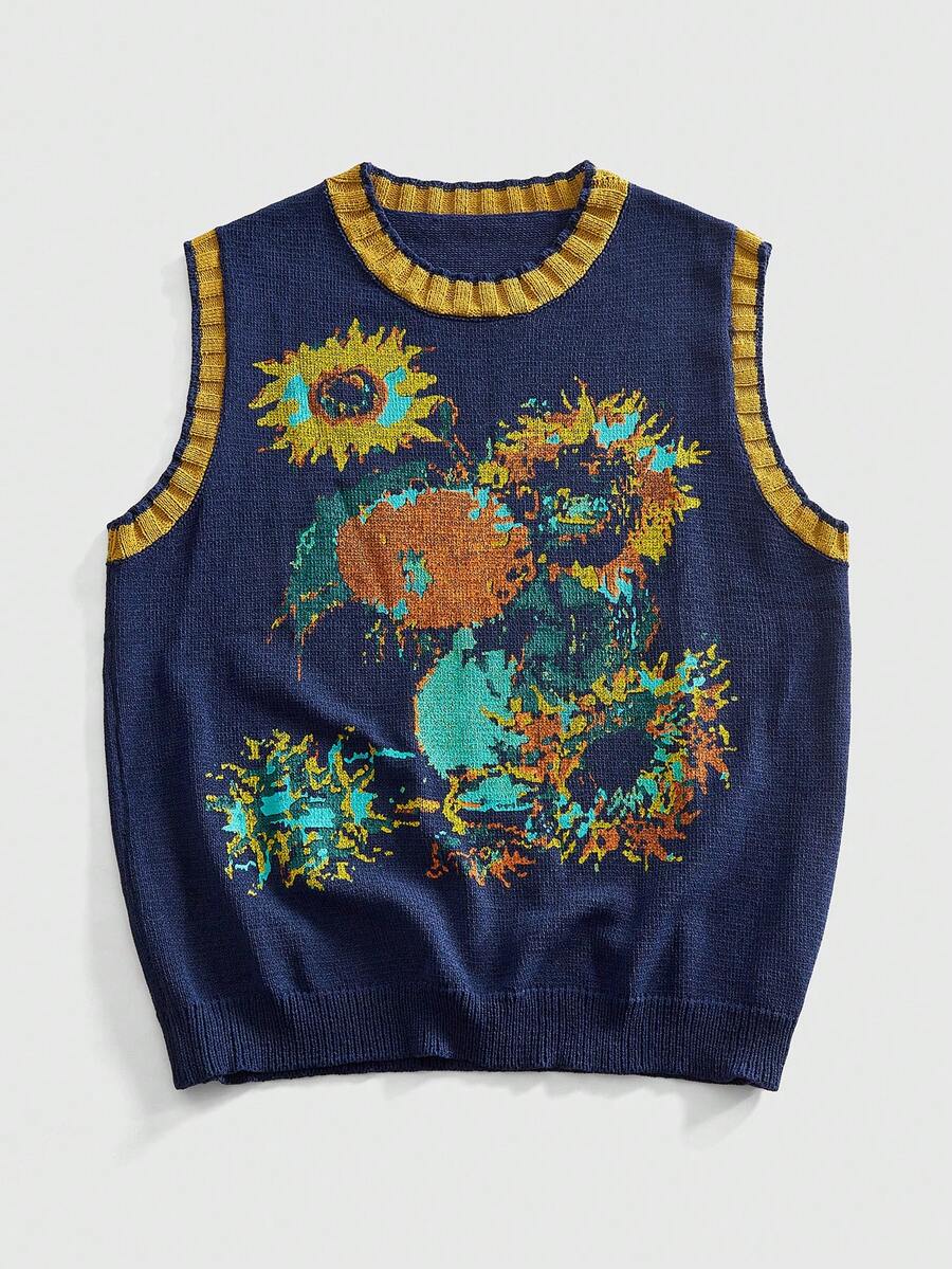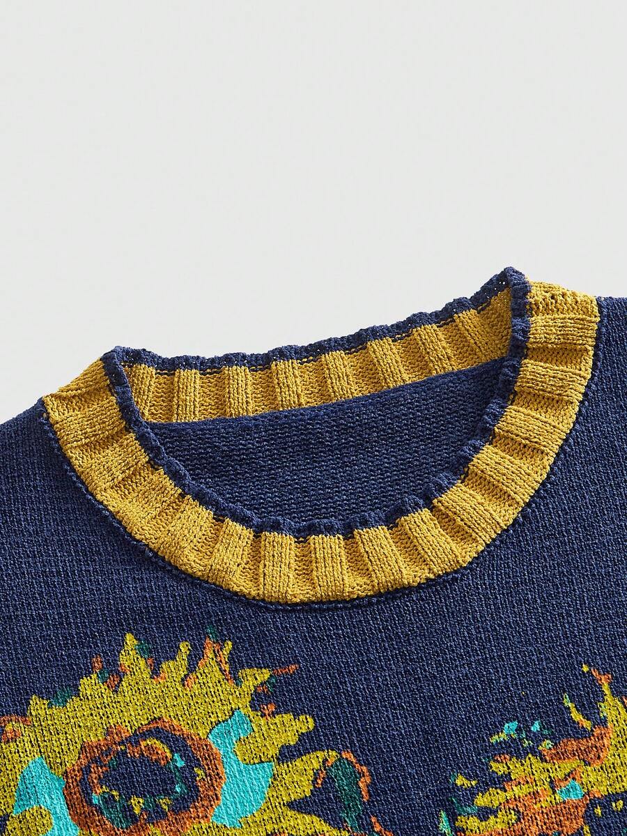 Street Life كنزة صوفية بياقة على شكل حرف V مطبوعة بزهور عباد الشمس، طراز كلاسيكي