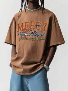 Street Life تي شيرت كاجوال بأكمام قصيرة وطباعة حرفية ذو ياقة دائرية للرجال، للارتداء اليومي