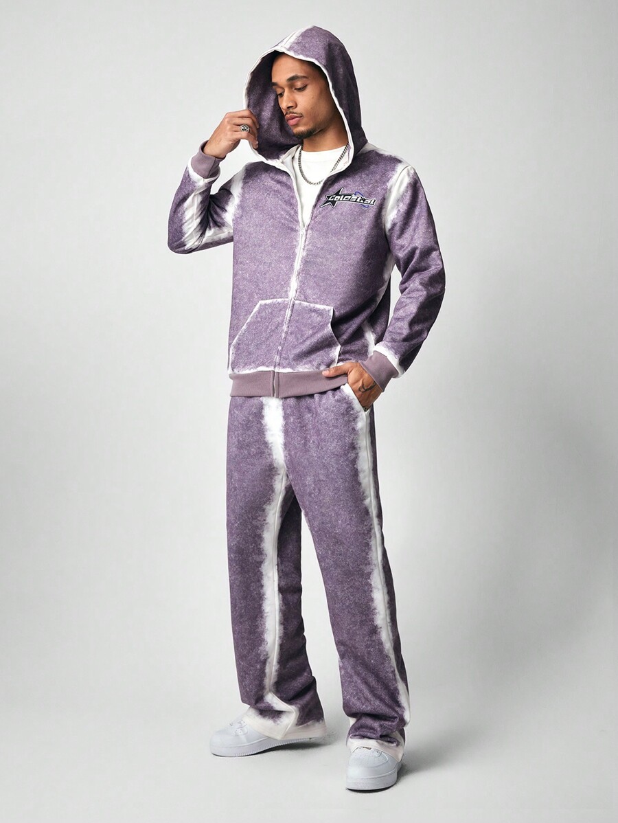 Street Life مجموعة بدلة تريننج رياضية للرجال مكونة من هوديي كم طويل مطبوع مع سحاب أمامي وبنطلون