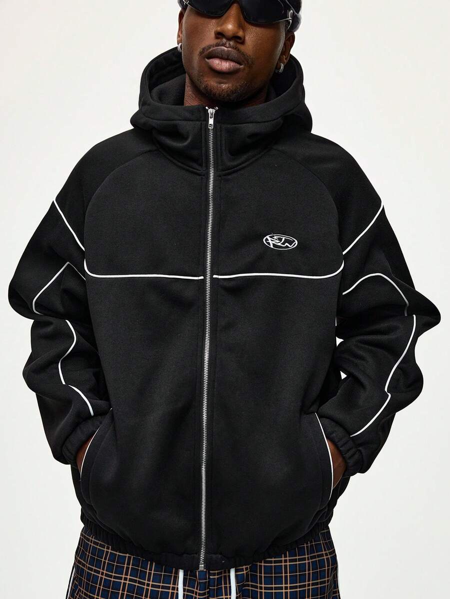 Street Life بلوزة هوديي كاجوال للرجال مع سحاب أمامي وخطوط متباينة