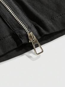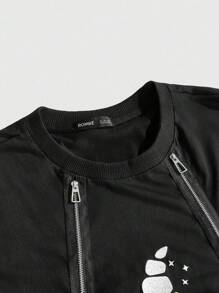 Street Life سترة رجالية بدون أكمام ذات سحاب بطباعة بسيطة باللون الأسود عصرية