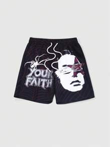 Street Life شورت كاجوال للرجال مطبوع بالرمز المسيحي, صيف