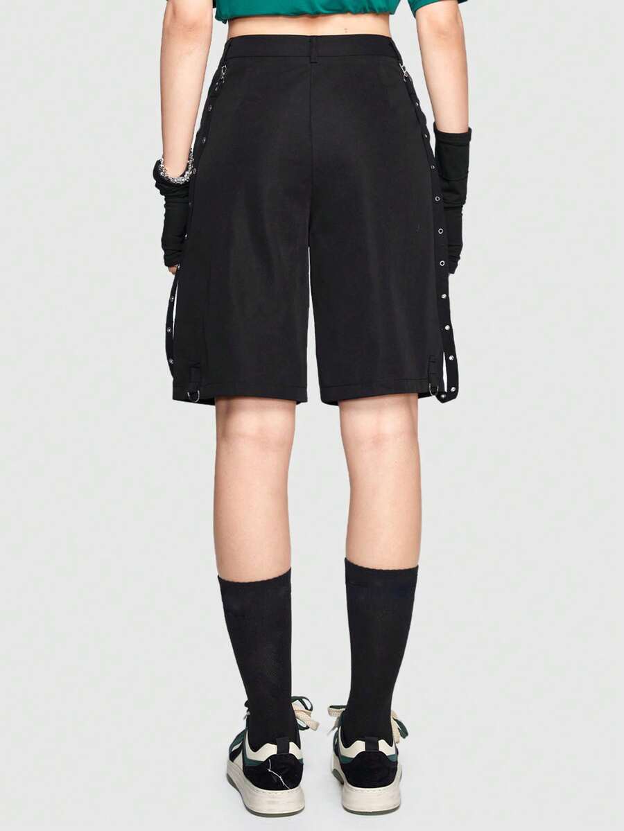 Street Life بنطلون قصير موحدة اللون سستة فتحات حلقي معدني
