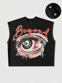 Street Life ملابس علوية أكمام رجالي فضفاض مطبوع بالزخارف المسامير