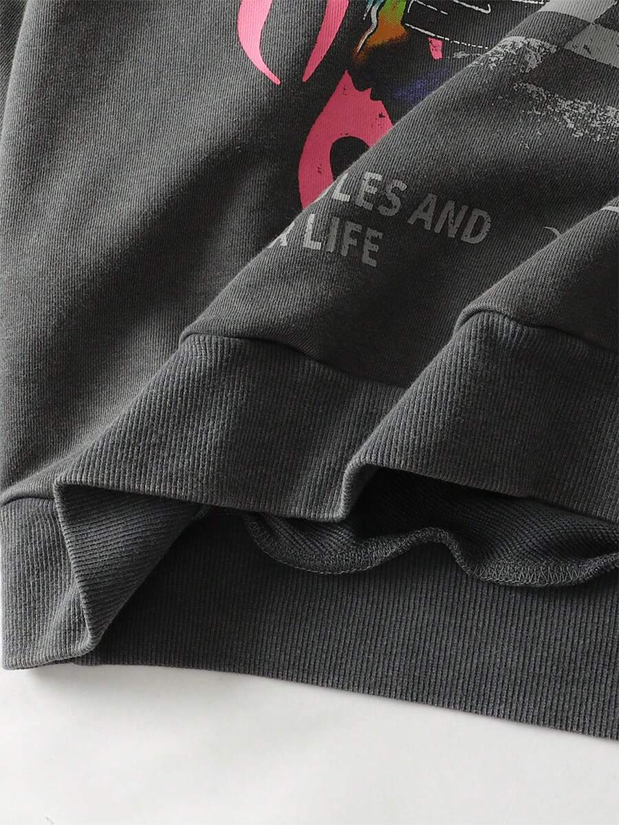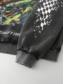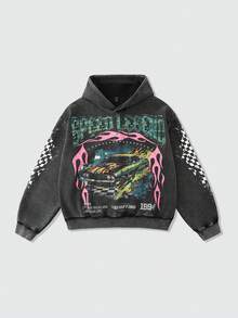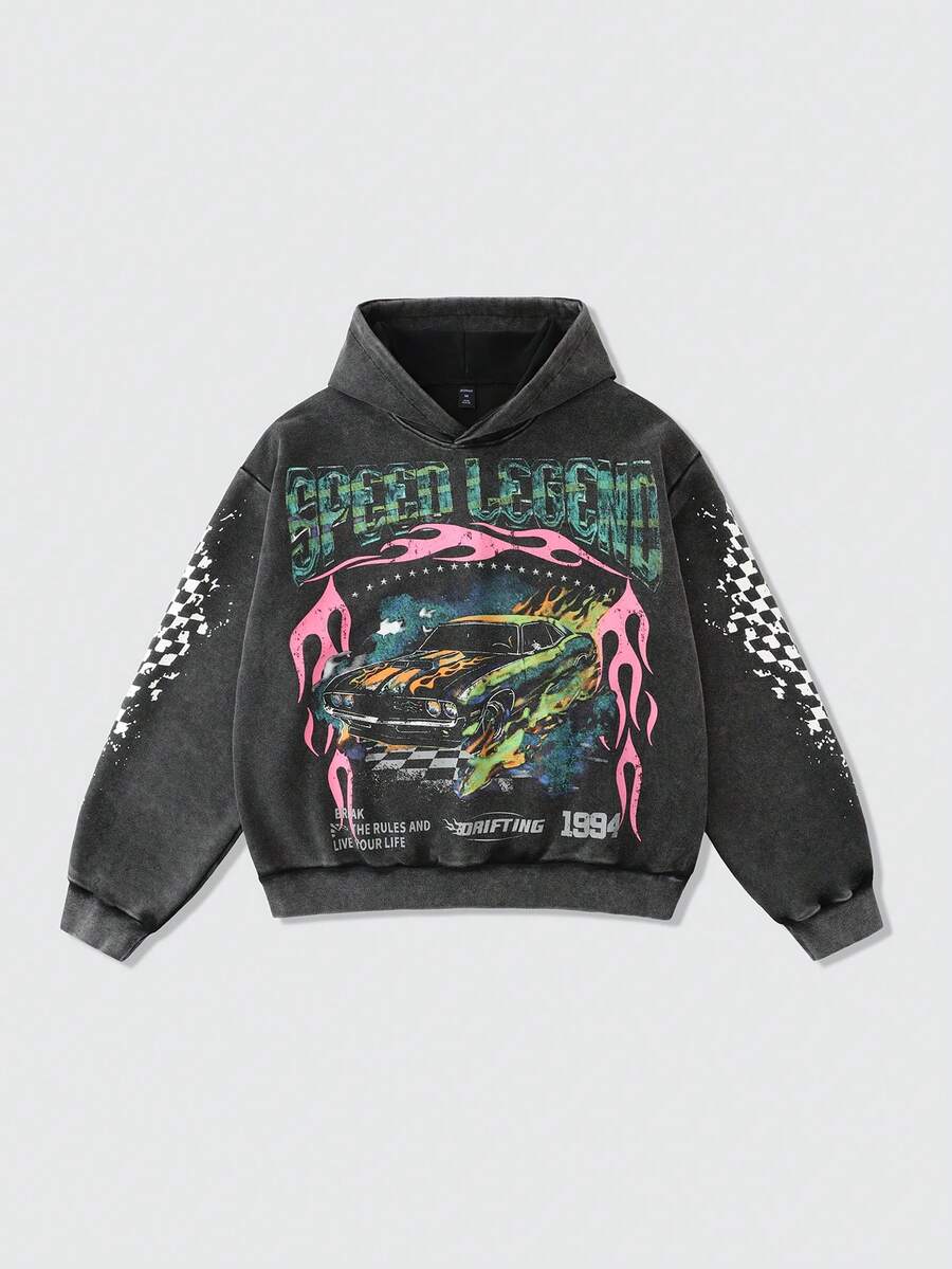 Street Life بلوزة هودي بأكمام طويلة مطبوعة بحرف وسيارة سباق للمراهقين