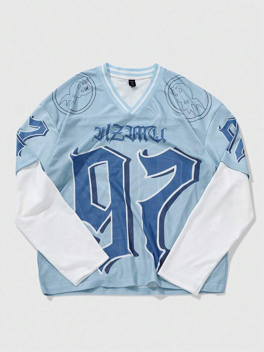 Street Life تي شيرت كاجوال رياضي للمراهقين الأولاد بطبعات أرقام وحروف على الرقبة V، موديل 2 في 1، مناسب للربيع والخريف