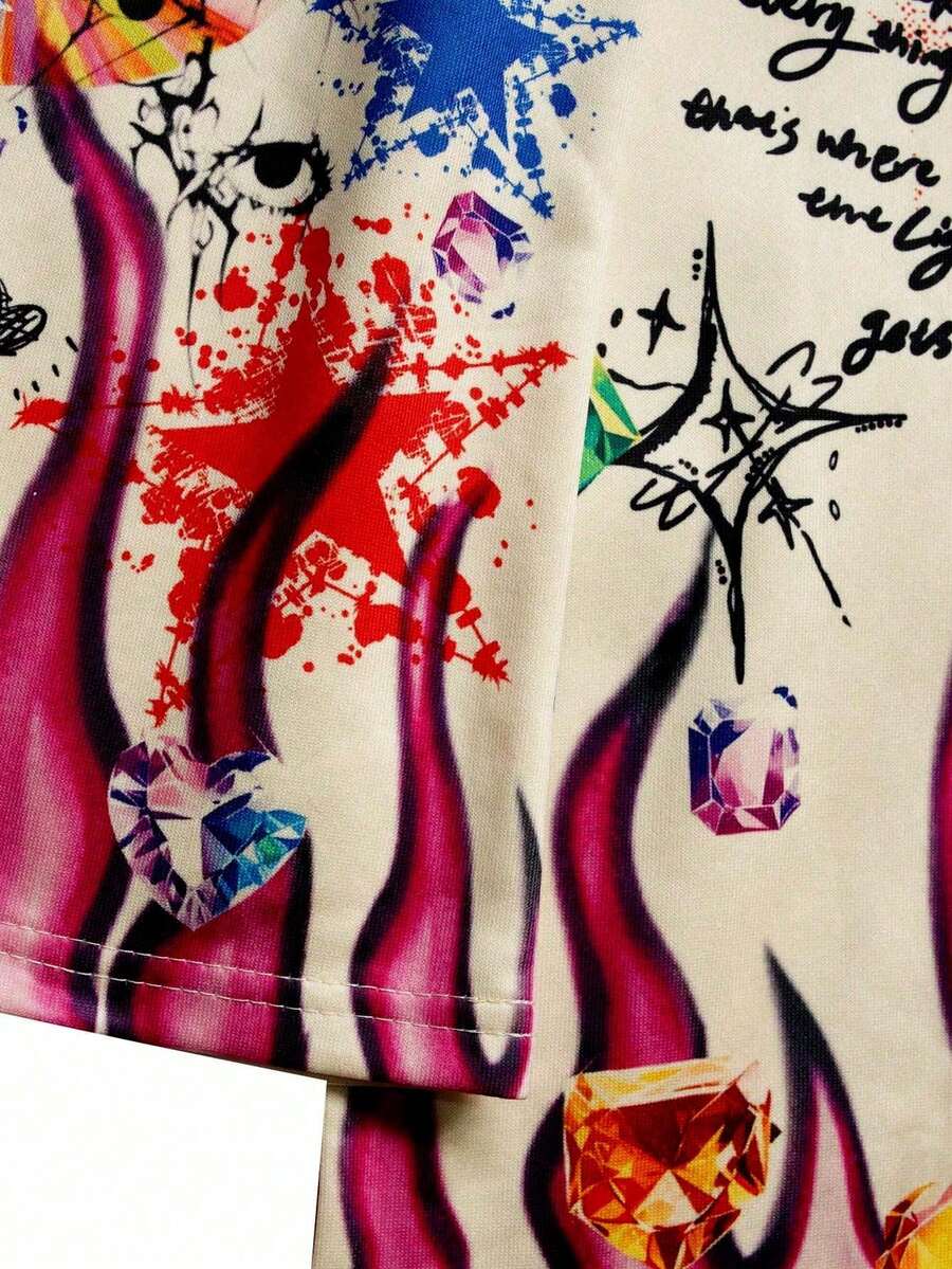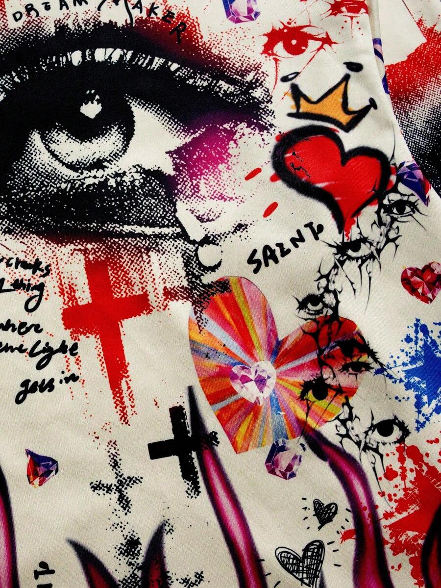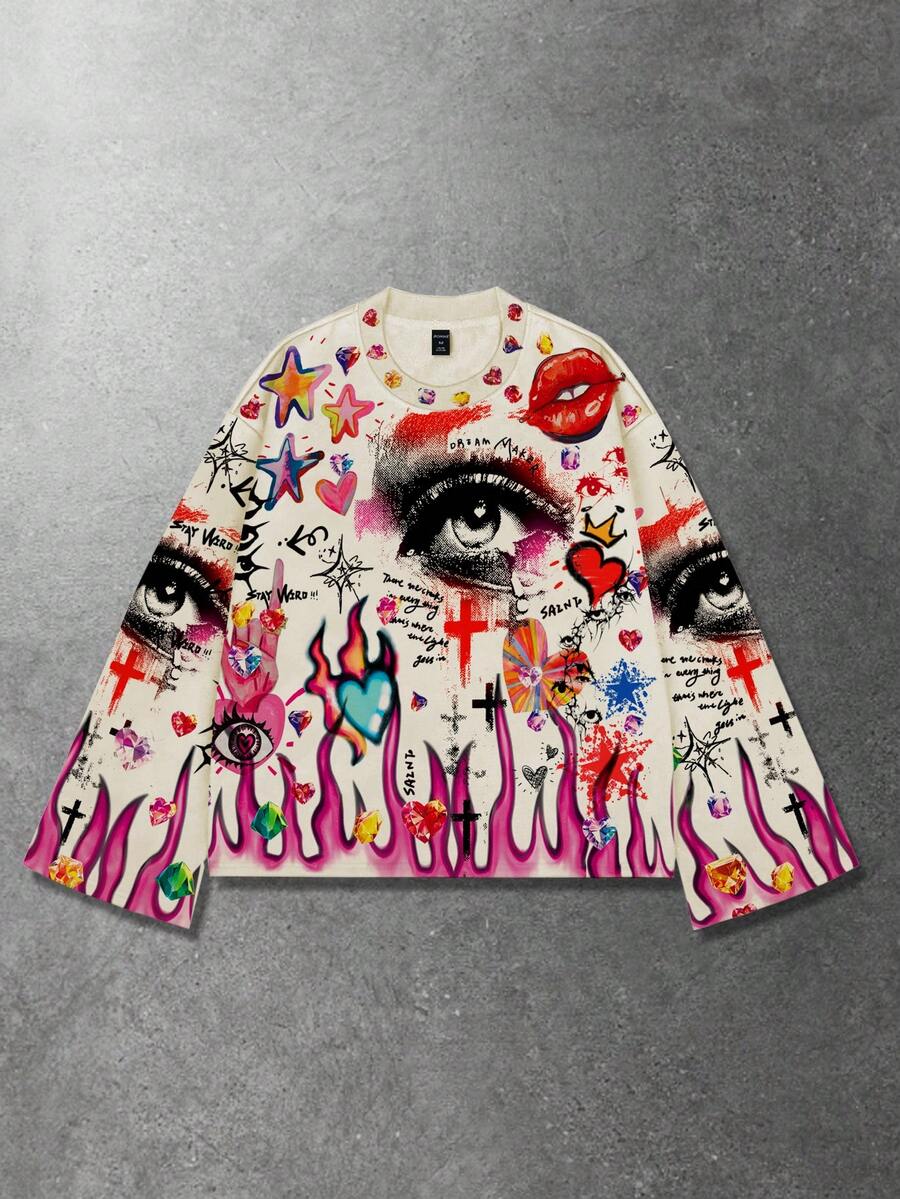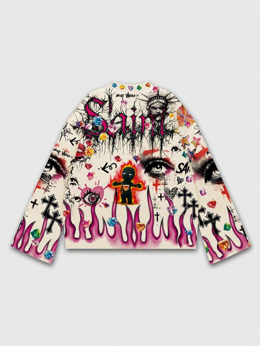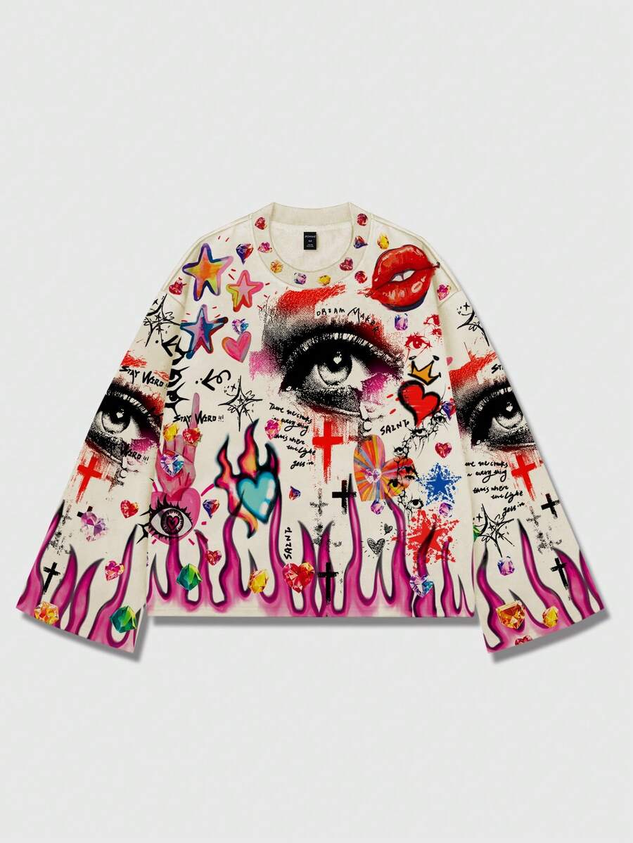 Street Life تي شيرت كاجوال يونيسكس بطباعة جرافيك ثقيلة بأكمام طويلة، مناسب للربيع والخريف والشتاء، بطابع بانك وشارع