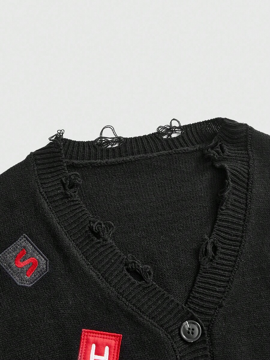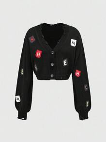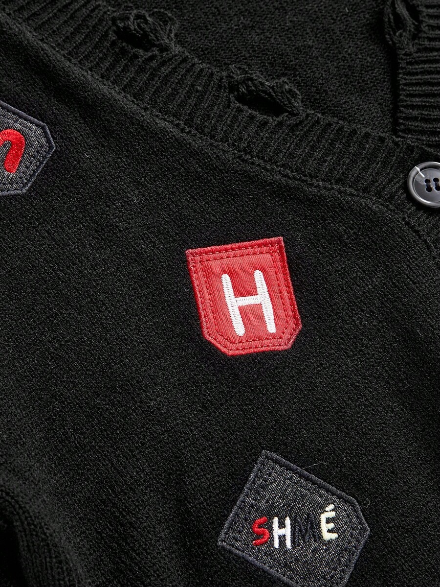 Street Life كارديجان نسائي مصنوع من الصوف مطرز بتطريز حرفي مشوه الأزرار الأمامية بطراز الملابس الشارعية Y2K