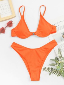 مجموعة بيكيني من ملابس الصيف ذات نسيج عادي للشاطئ، بدلة استحمام