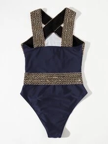 ملابس سباحة قطعة واحدة تفاصيل الغرزة متقاطع