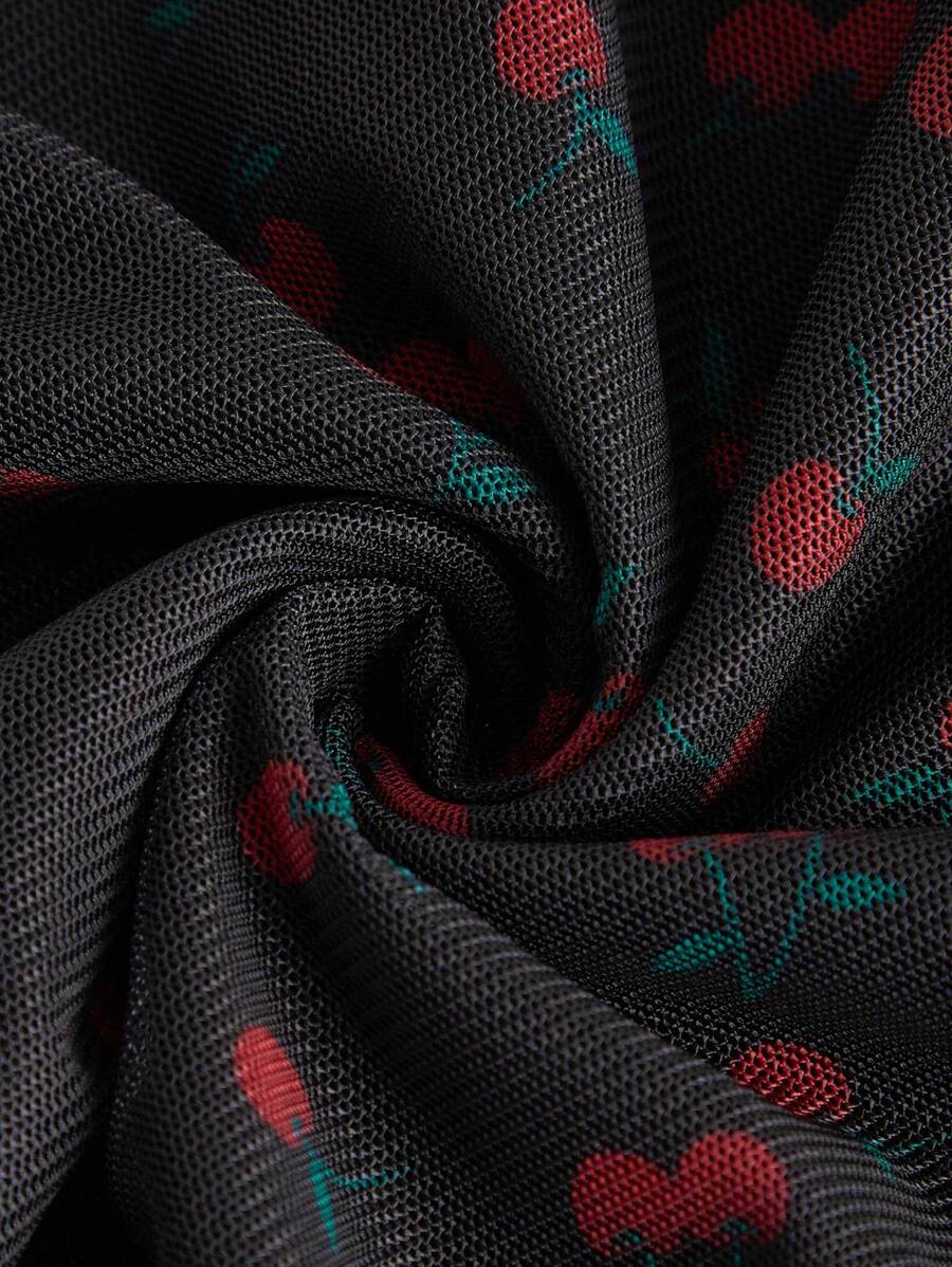 تنورة طويلة مصممة لإطلالات الصيف بطابع عصري مطرزة بتطريز الكرز على نسيج الشبكة
