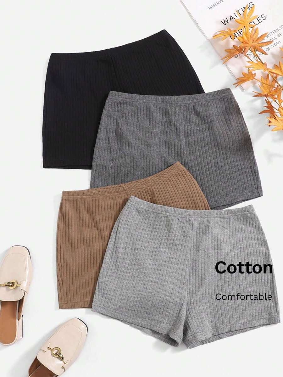 4 قطع من السراويل القصيرة الكاجوال والمحبوكة بتريكو فصلي