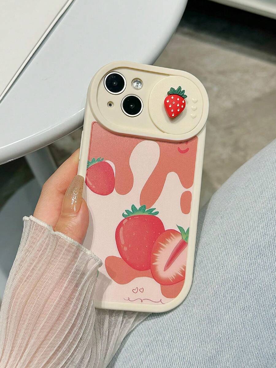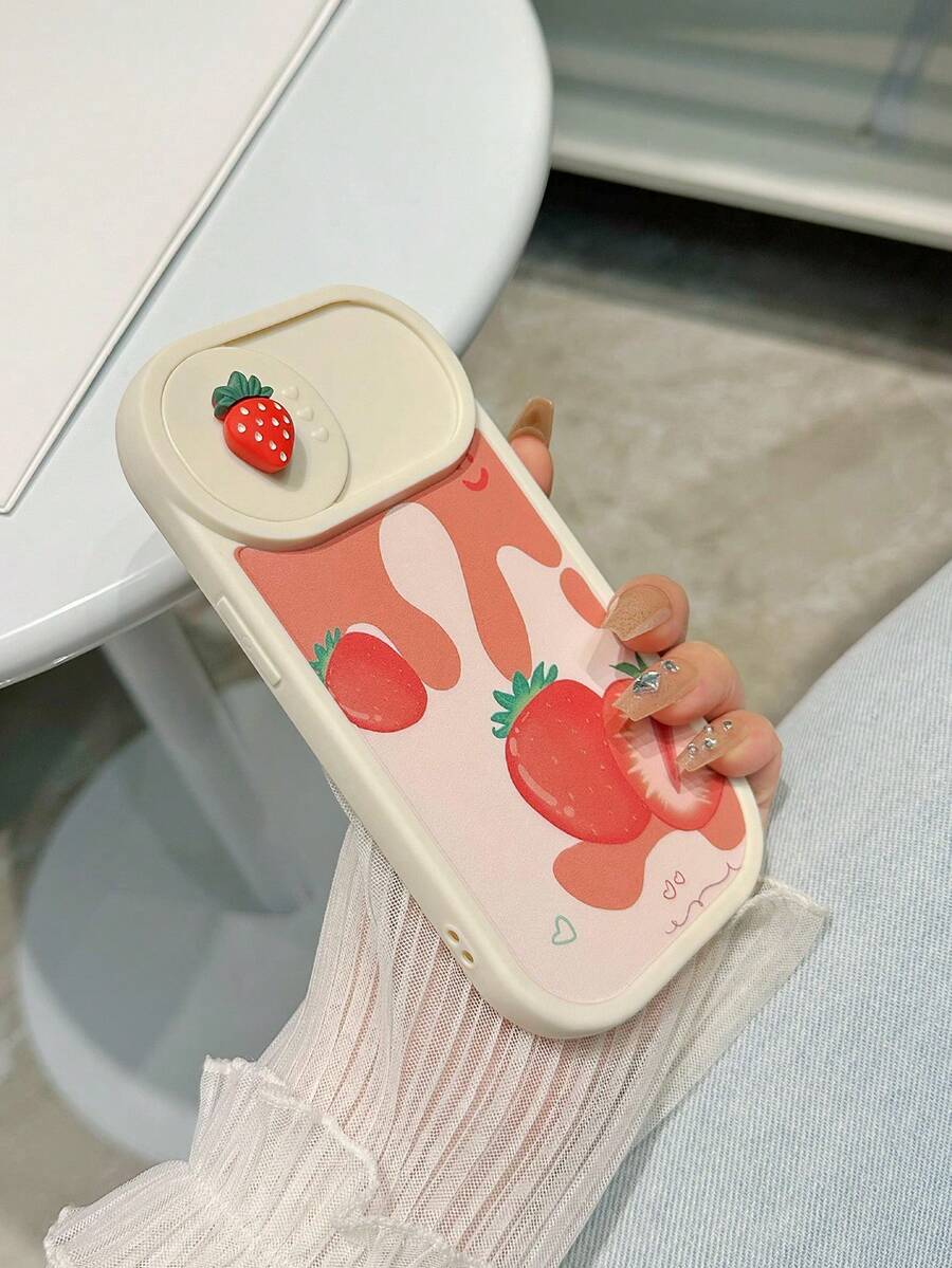 حافظة الهاتف مع شعار الفراولة الصيفي وغطاء انزلاقي للكاميرا