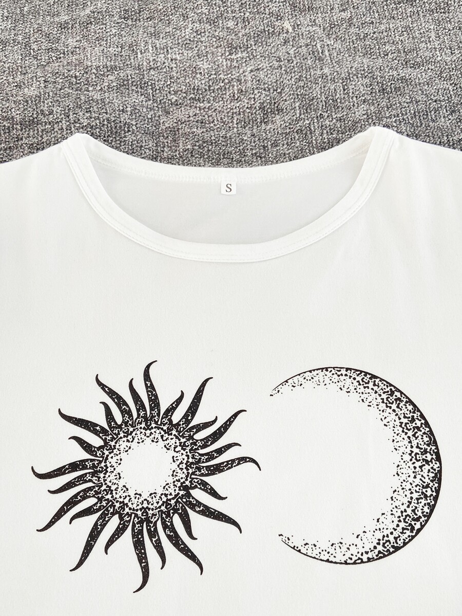 طقم بيجامة تيشيرت وبنطلون بطباعة الشمس والقمر
