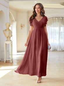 فستان حفلة شيفون بأكمام فراشة ومتداخل امامي