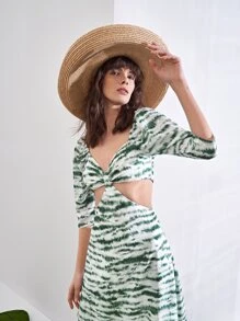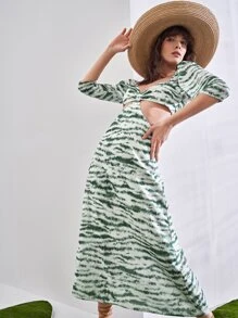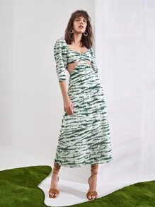فستان بصبغ متعادل مقصوص الخصر ومدرز امامي وبعنق سويت هارت
