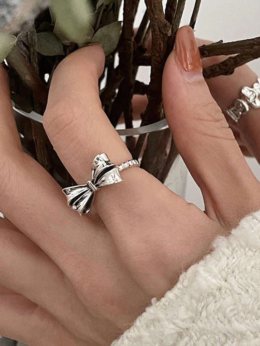 Sweetness خاتم مفتوح موضة سبائك الزنك مزخرف بعقدة الفراشة للنساء الزخرفة اليومية قطعة واحدة