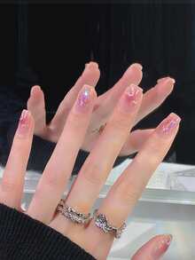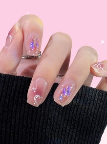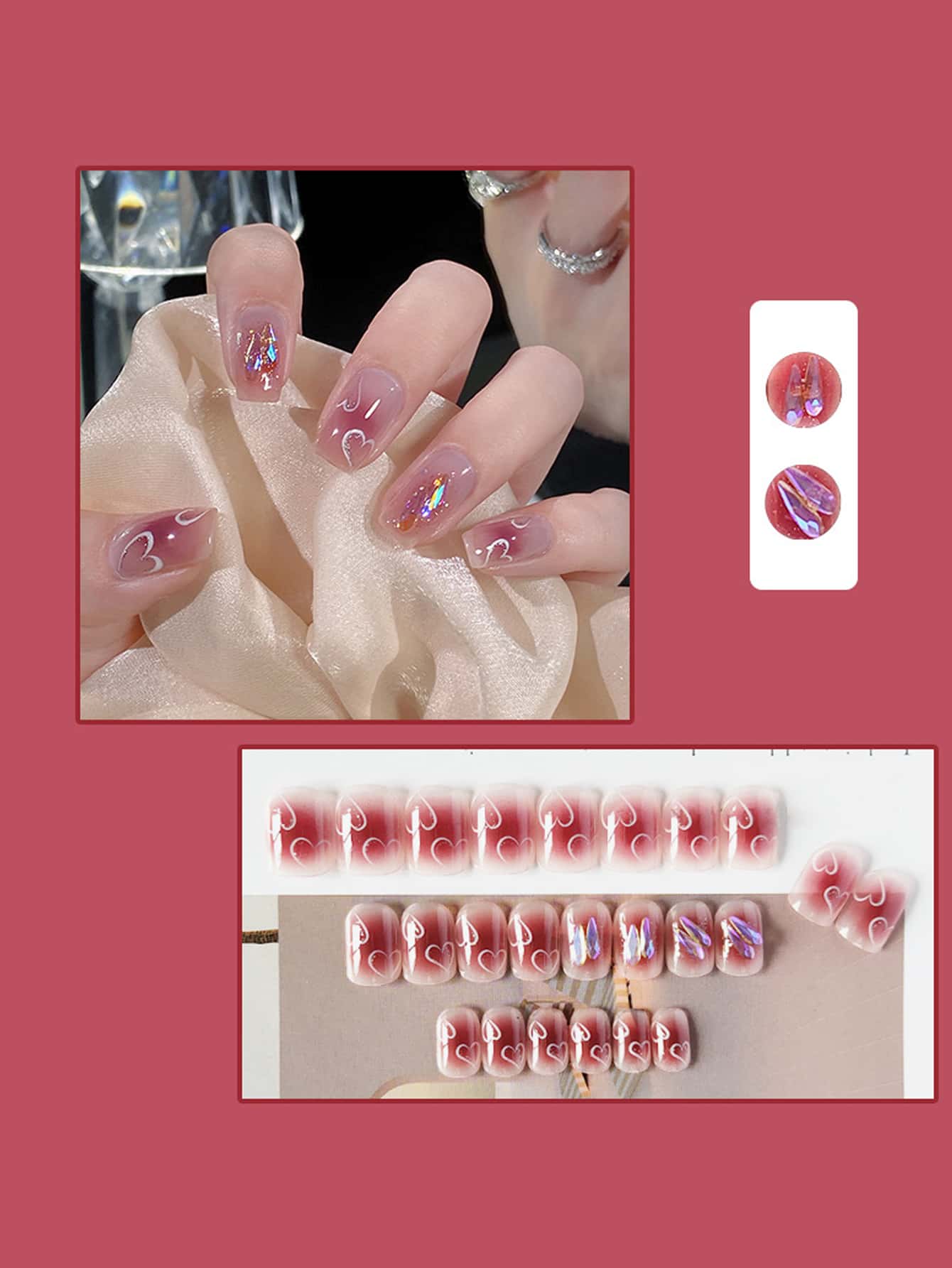 Sweetness أظافر اصطناعية مربع بطباعة قلب 24قطع و ورقة واحدة شريط