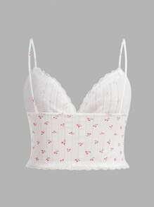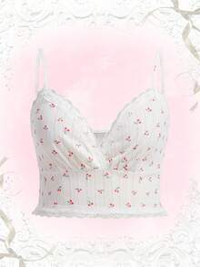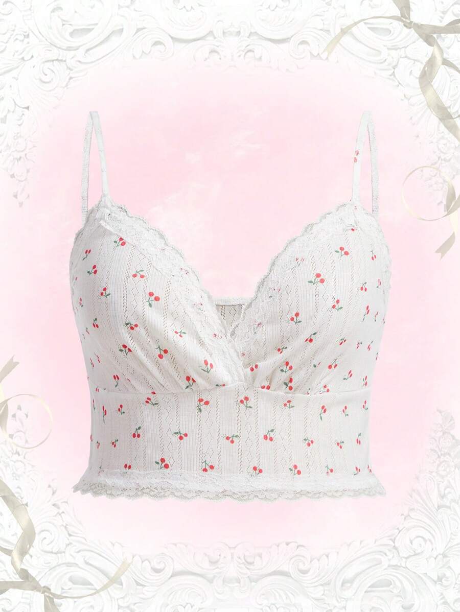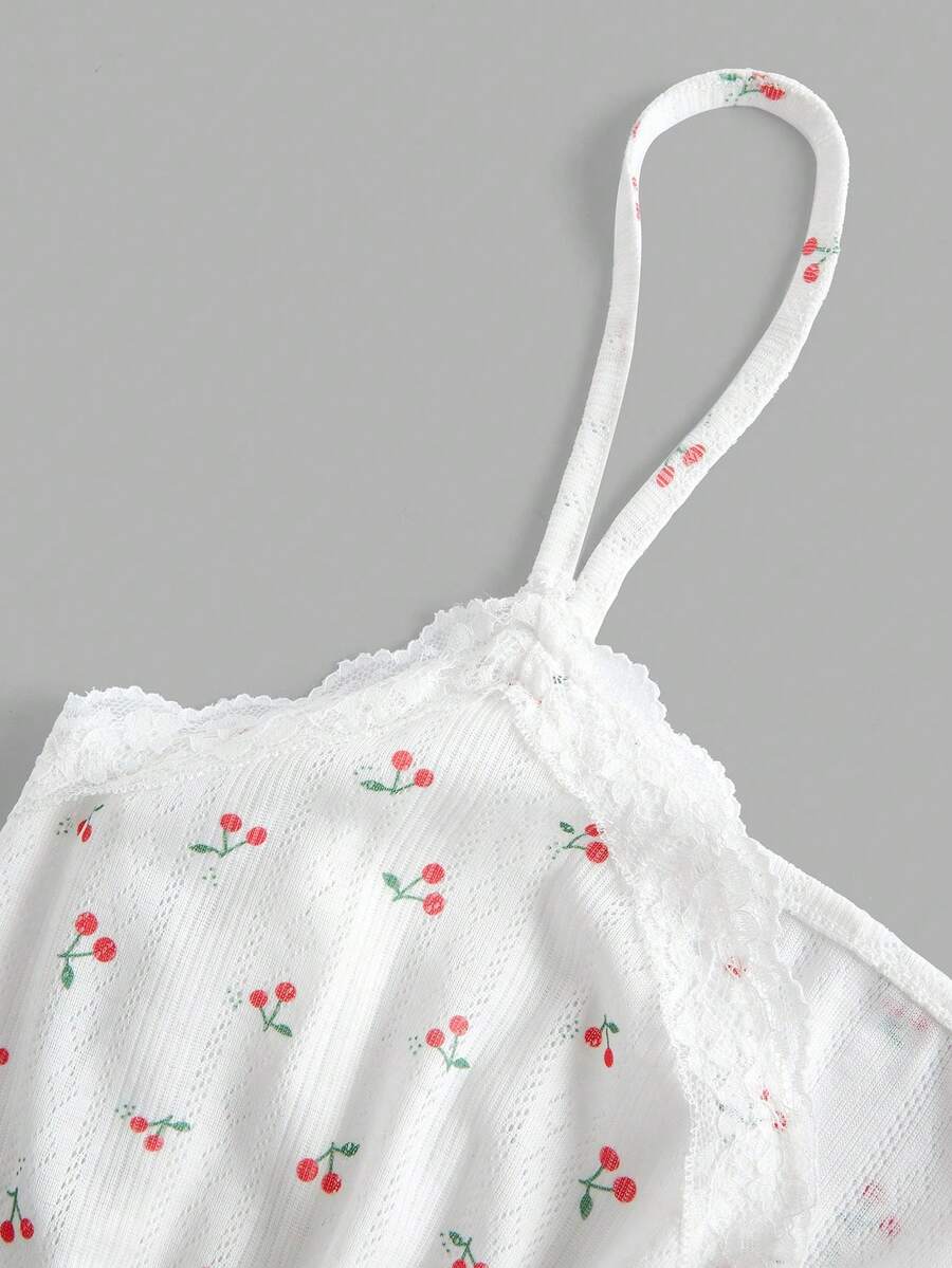 Kawaii صدرية كامي بطباعة كرز مقلم دانتيل مقاس كبير