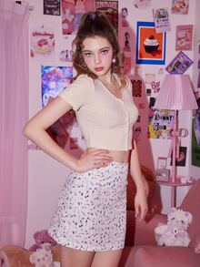 Sweetness مضلع تي شيرت مع زهر ديزي تنورة