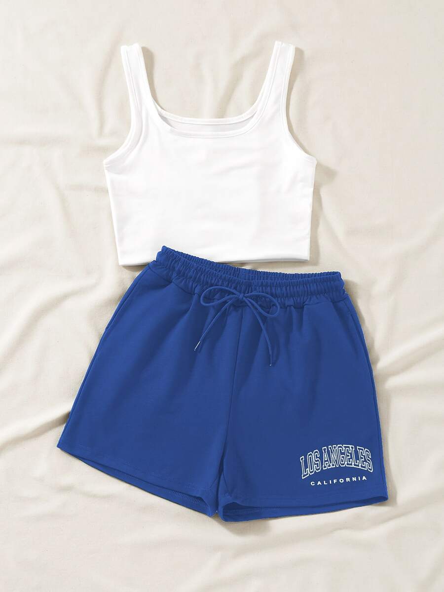 تانك توب وشورت برباط خصر وجرافيك عبارة