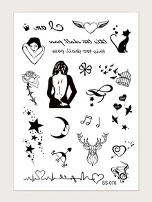 ملصق وشم , 1 قطعة نمط مختلط وشم يمكن التخلص منه للنساء , ملصقات الوشم بالغ , حقيقي نجمة , قمر , للنساء و بنات