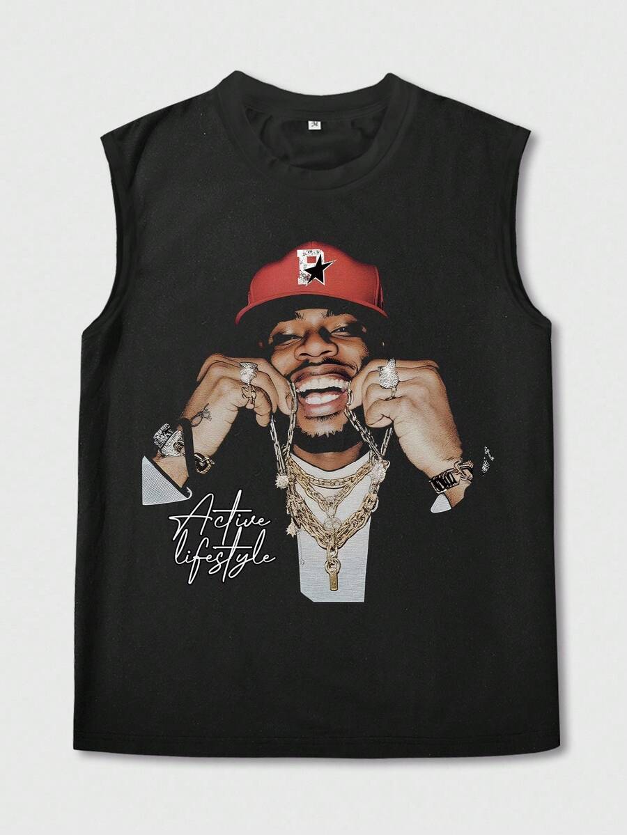 Street Life ملابس علوية أكمام بلا أكمام مطبوع بصورة فتى مراهق، مناسب للارتداء اليومي في الربيع والصيف