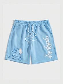 Street Life شورت صيفي فضفاض للمراهقين بخصر رباط وجيوب مائلة مع طباعة حرف وشجرة النخيل، أسلوب عطلة عادي