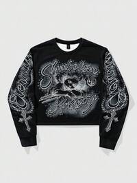 Street Life بلوزة بياقة طاقم وأكمام طويلة مطبوعة بالحرف والصليب للمراهقين