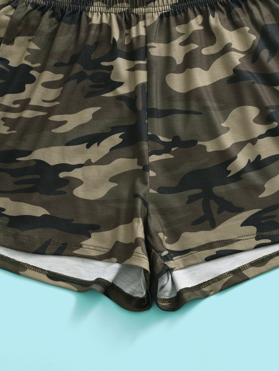 طقم شورت مع لباس علوي كامي بطباعة مموة للبنات المراهقات