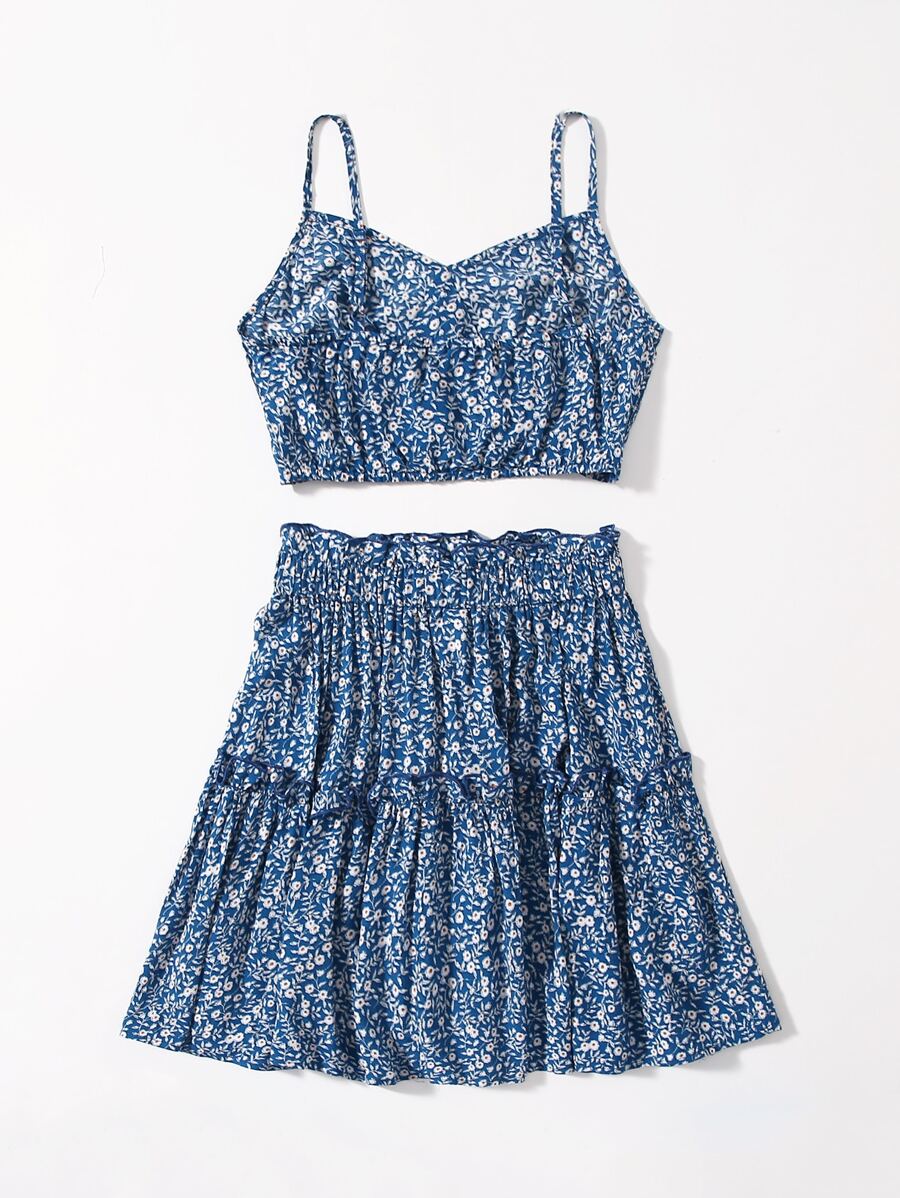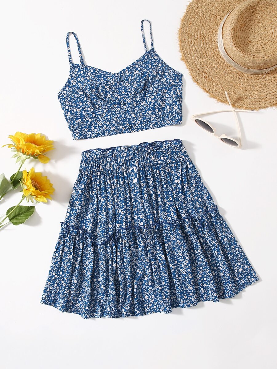للفتيات المراهقات زهر ديزي صدرية كامي و بتفاصيل كشكش طقم تنورة