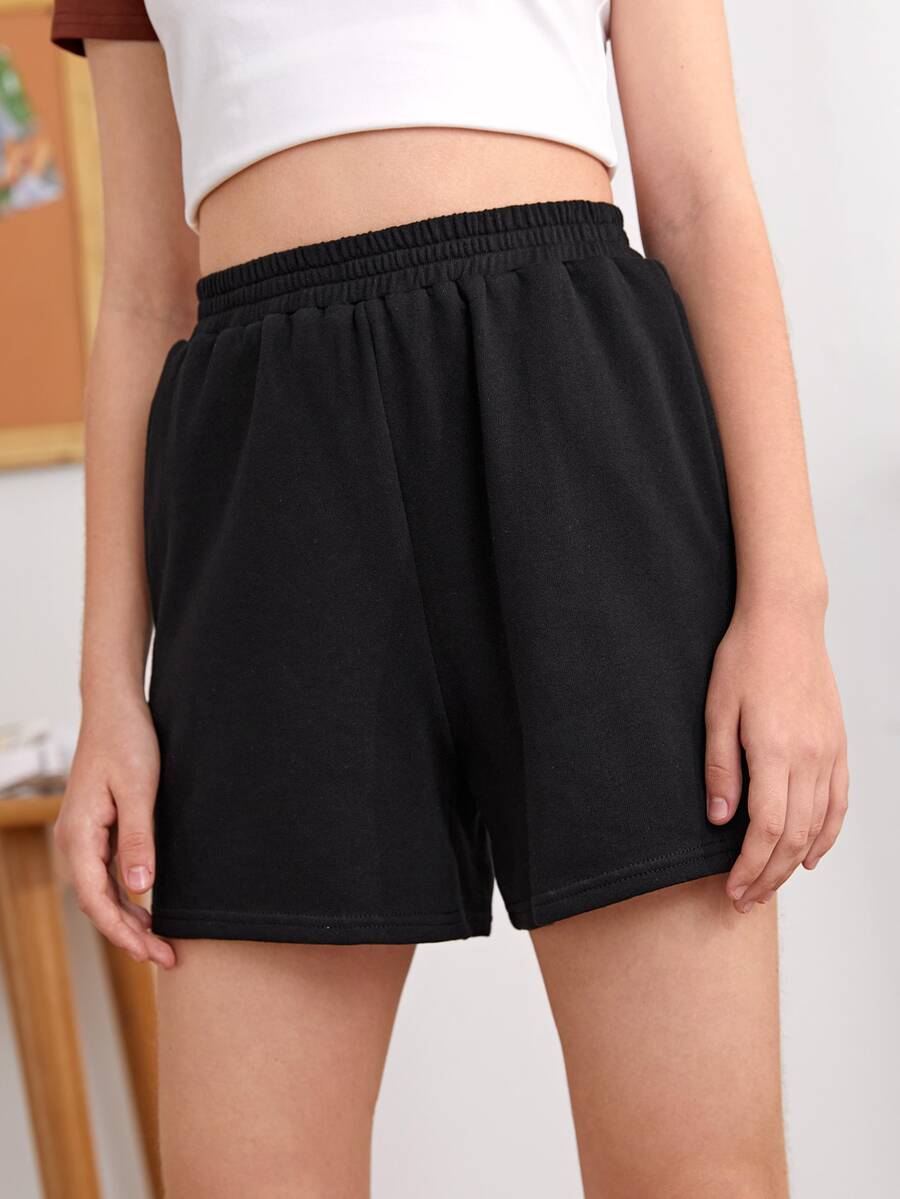 شورت تريك بلون موحد بجيب منحدر بخصر مطاط للبنات المراهقات
