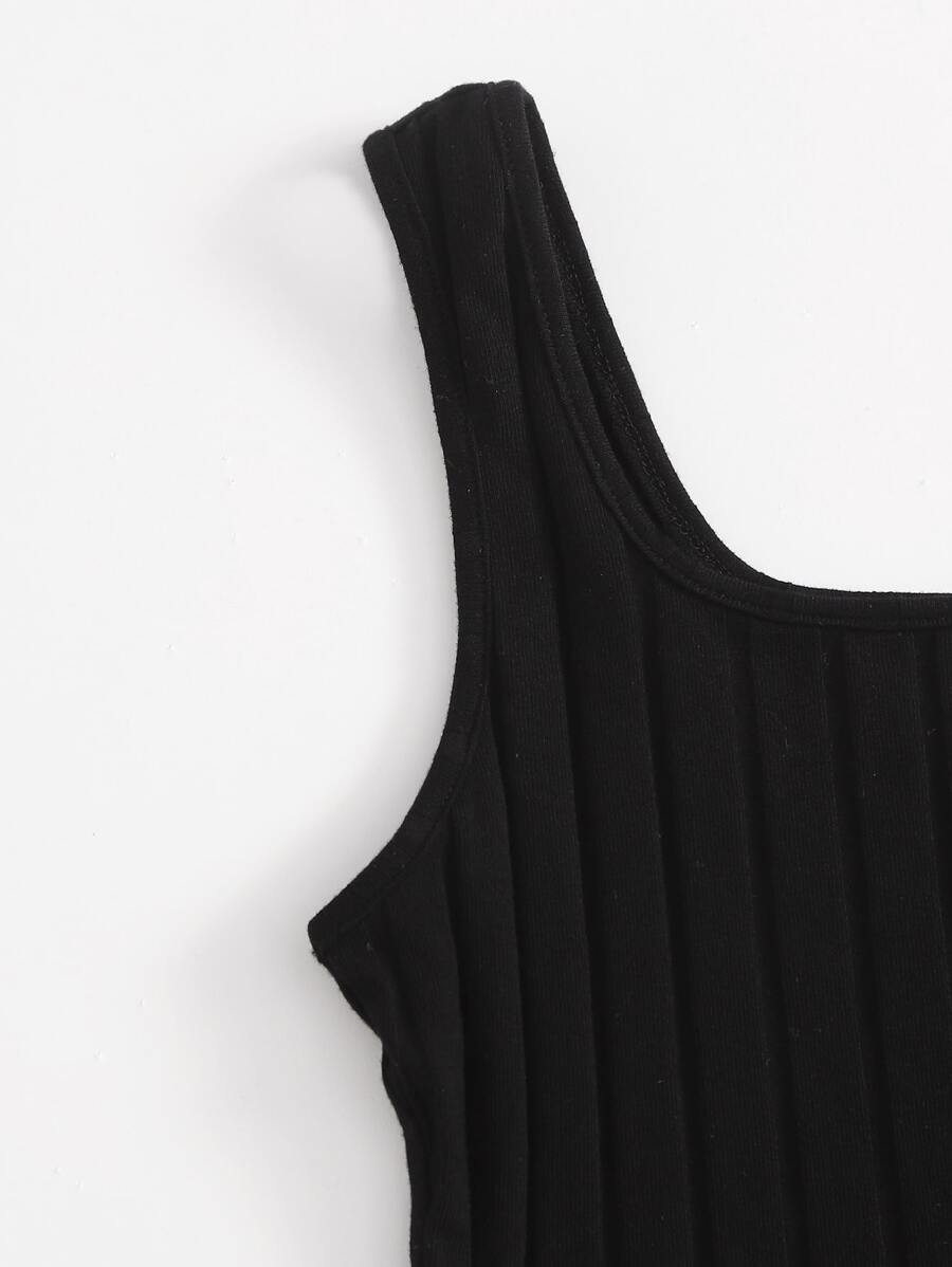طقم تنورة مربع النقش بحافة مشقوق مع لباس علوي بدون اكمام محبوك مضلع للبنات الصغار