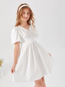 فستان فلير مكشكش بأكمام منفوخة فتيات
