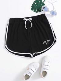 شورت تريك بجرافيك عبارة للبنات في سن المراهقة