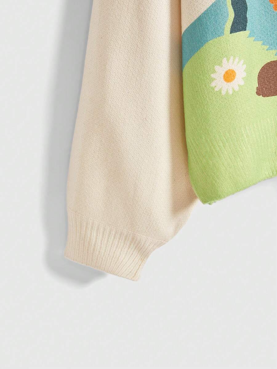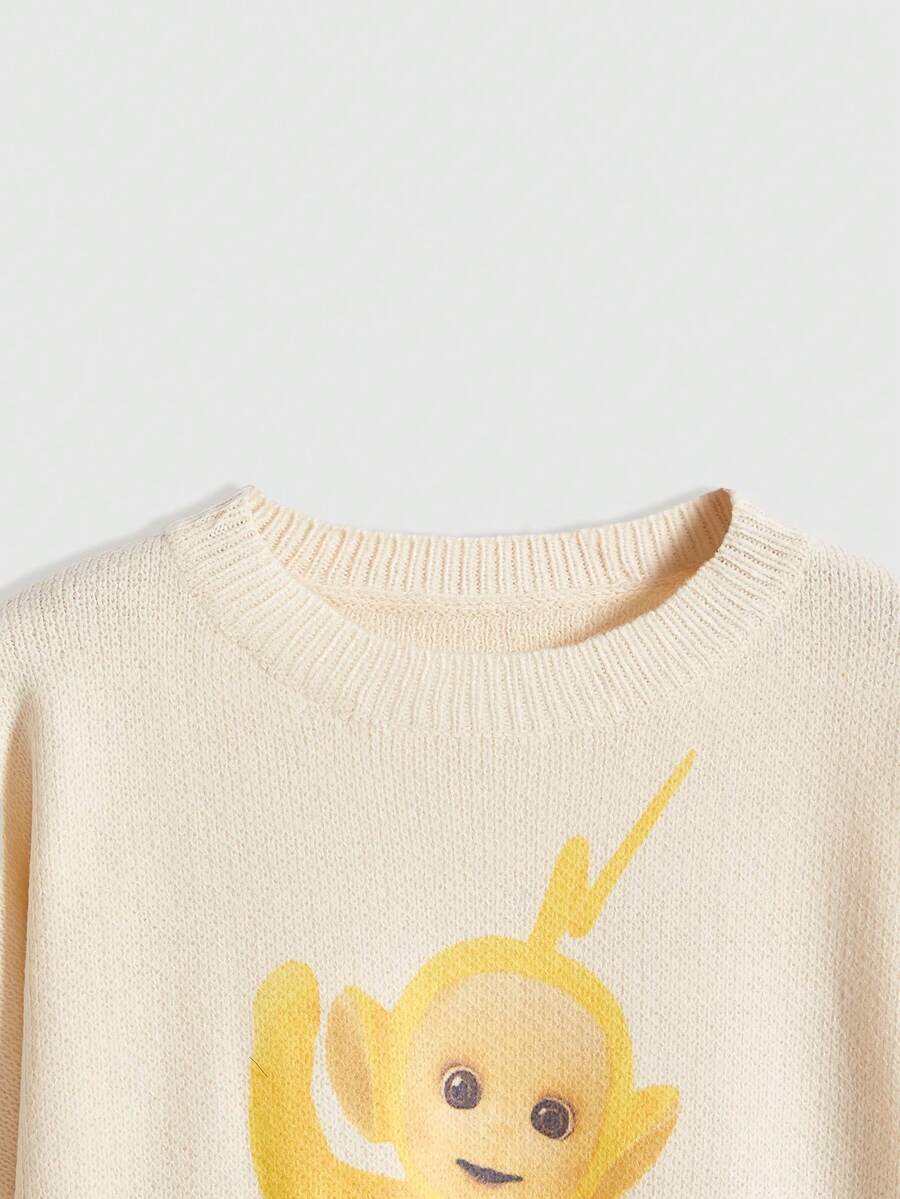 Teletubbies X ROMWE كنزة صوفية كنزة بياقة طاقم بنمط كرتوني جميل من طراز Y2K للنساء