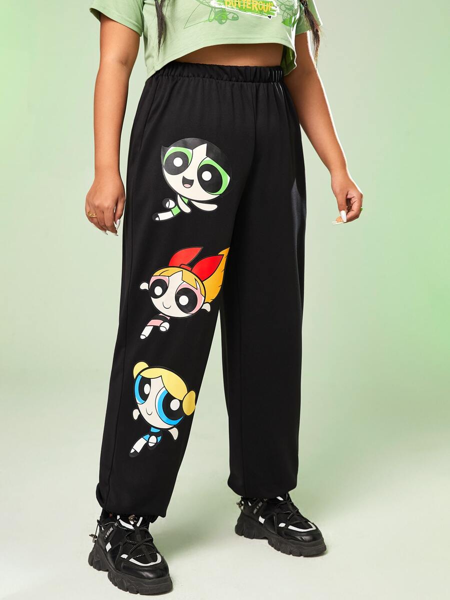 The Powerpuff Girls | ROMWE بناطيل رياضي صور رسوم كارتون مقاس كبير
